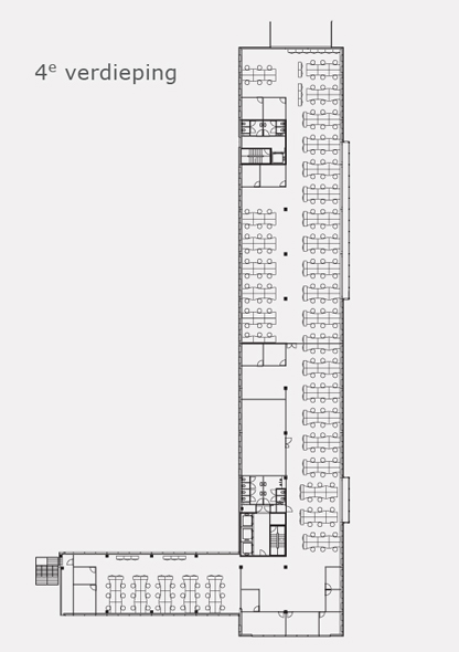 Voor verhuur is op dit moment circa 3.300 m² beschikbaar verdeeld over de 4de en 5de verdieping.